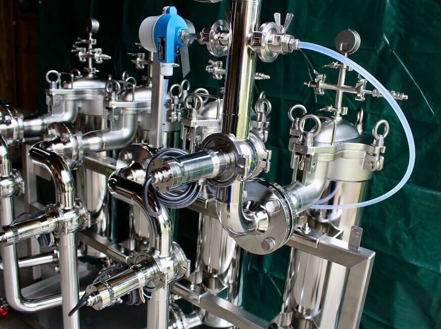 🔹 Schaugläser mit Leuchten vor und nach jedem Filter für maximale Transparenz im Prozess
