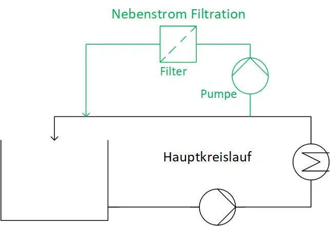 Die Nebenstrom Filteranlagen sind stationäre oder mobile Filteranlagen, welche an verschiedenen Kreisläufen / Behälter angeschlossen werden können und so Partikel wie Rost, organische resp. anorganische Rückstände filtern können. Beim Einsatz von Nebenstrom Filteranlagen wird nur ein Teil des Kreislaufes filtriert, was dazu führt, dass der Filter viel kleiner ausgelegt werden kann, als wenn der ganze Kreislauf (Vollstrom-Filtration) immer durch den Filter läuft.