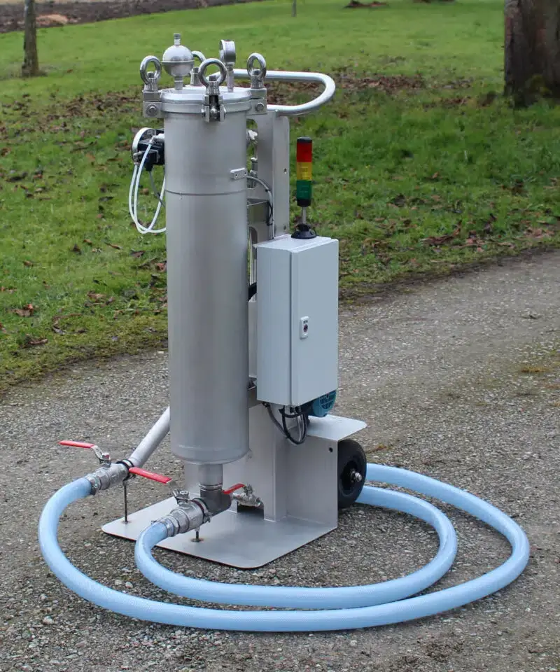 Die mobile Ausführung (auf Plattformwagen, als Sackkarren oder staplertauglich) der Nebenstrom Filteranlage kann sehr gut eingesetzt werden, um ein kontaminiertes System wieder auf Vordermann zu bringen. Die mobilen Anlagen werden eingesetzt, wo verschiedene Kreisläufe / Behälter filtriert werden müssen. So kann die Anlage alternierend auf den Kreisläufen / Behältern eingesetzt werden. Die Steuerung mit automatischer Abschaltung ermöglicht den Betrieb ohne grossen Personalaufwand. Im üblichen Kontrollinterval (wöchentlich, monatlich) kann die Wartung erfolgen.
