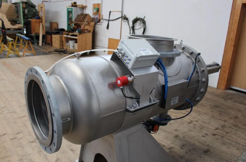 Unser DN 400 Bernoulli-Filter aus Edelstahl filtert beeindruckende 1350 m³/h Wasser aus der Einspritzkondensation, ausgestattet mit einem präzisionsgefertigten 0,5 mm Spaltrohrkorb.